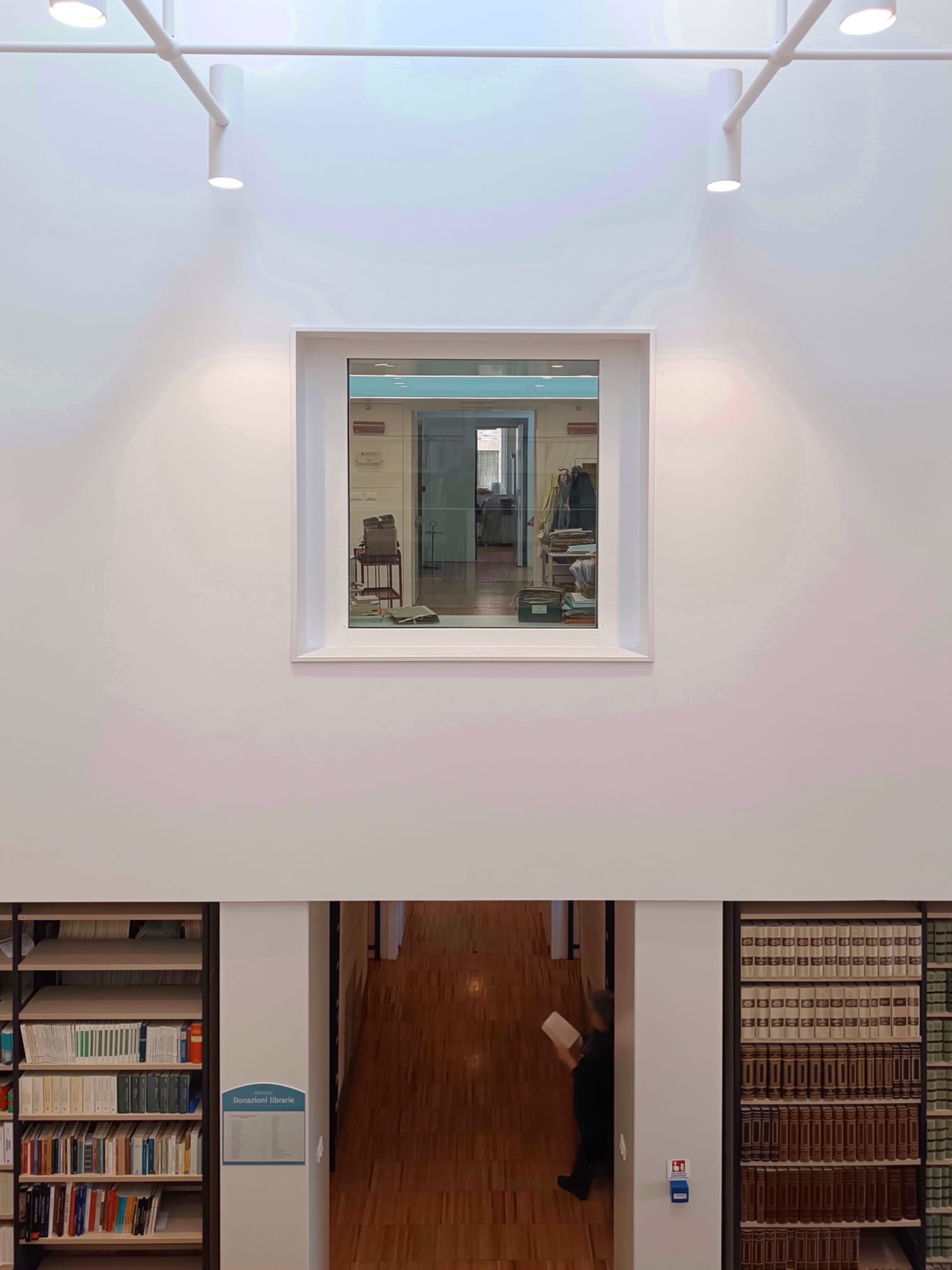 The result is an evocative, extremely rarefied space, which enjoys the zenithal light of the large central skylight. The facades have preserved the existing layout, but the surfaces have been treated in an antique way, with the result of giving the building a diachronic aspect, in chromatic and morphological harmony with the surrounding historical fabric.
